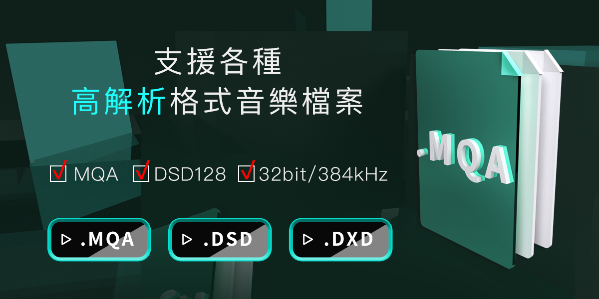 - 支援多種高解析音樂格式,包含MQA、DSD、DXD