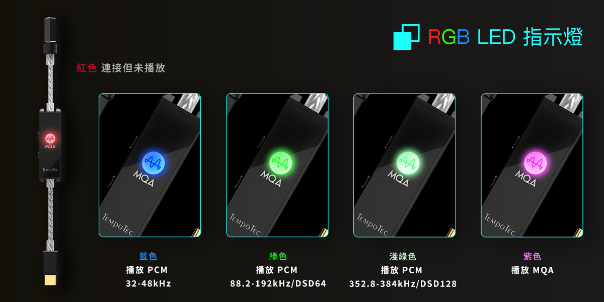 - 淺綠色:播放PCM 352.8~384kHz / DSD128的音樂格式
